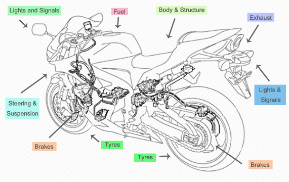 - Identify the basic components of the motorcycle that need to be maintained