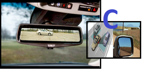 Cermin pandang belakang dan sisi untuk mendapatkan maklumat di belakang dan sisi kenderaan.