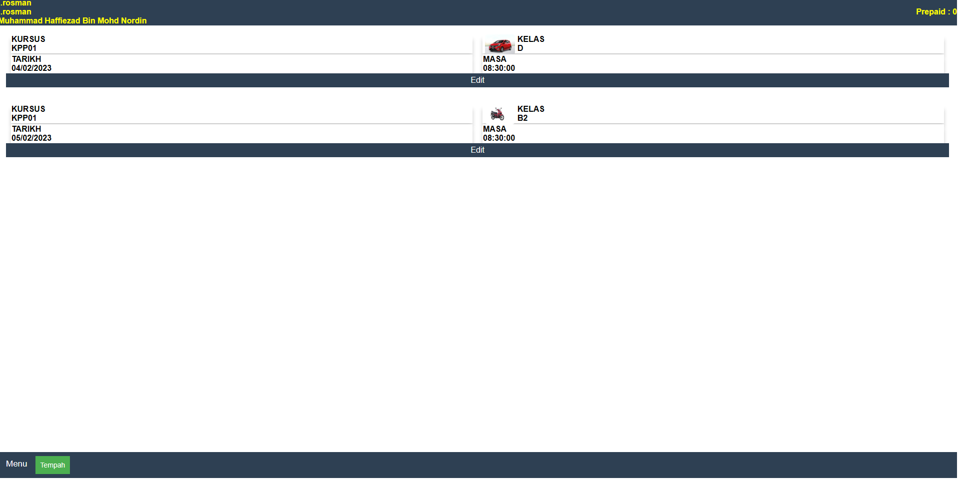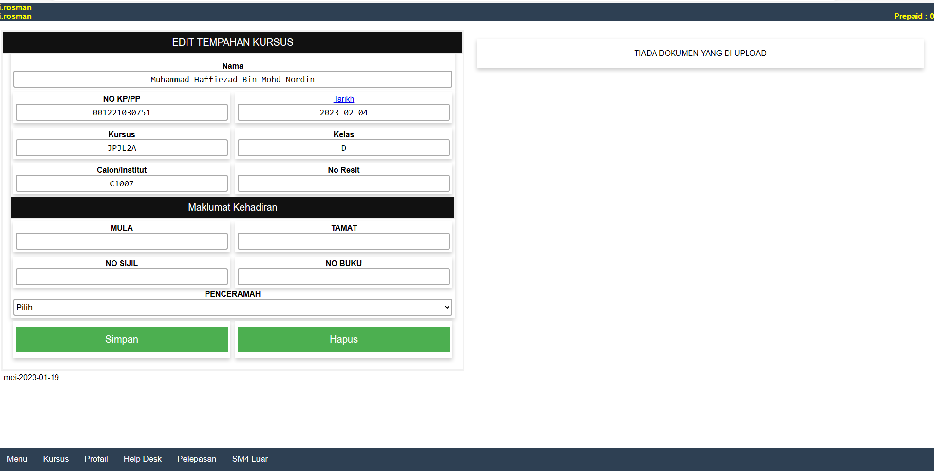 Klik Untuk Mengemaskini Maklumat Tempahan Kursus Calon