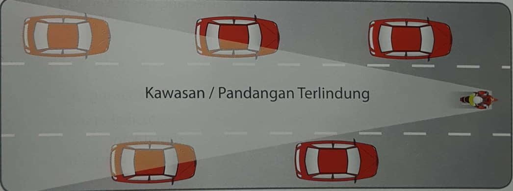 Kawasan/ pandangan terlindung (blind spot) adalah dua kawasan di kiri dan kanan yang terlindung dari pandangan mata penunggang motosikal. Ia juga terselindung dari penglihatan dengan menggunakan cermin sisi