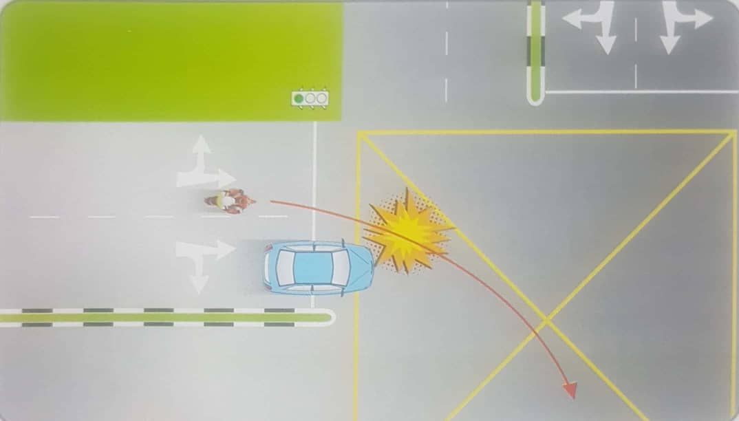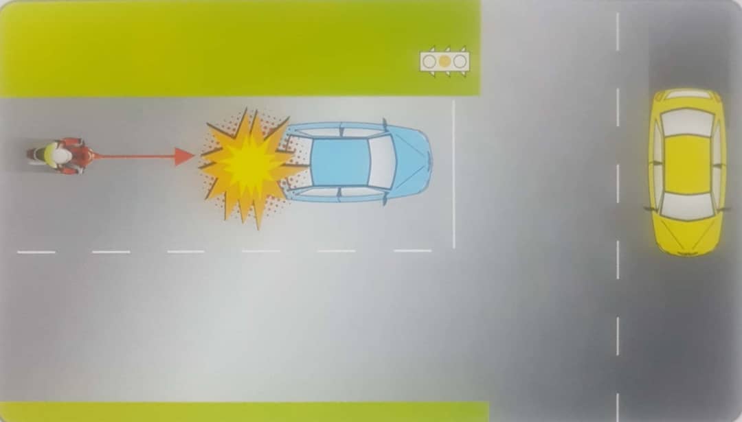 - Penunggang gagal mengamalkan peraturan memotong.Penunggang juga gagal melihat ke hadapan sekurang-kurangnya dalam jarak 100 meter ke hadapan atau 12 saat ke hadapan
