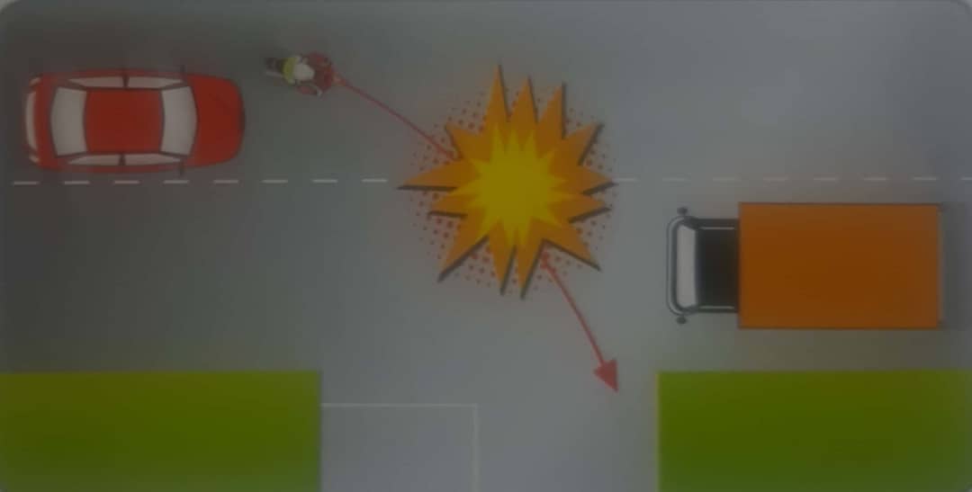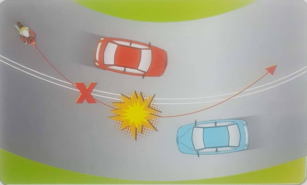 Kemalangan jalan raya boleh berlaku, antaranya adalah disebabkan pelanggaran antara dua buah kenderaan. Faktor utama adalah kecuaian pemandu atau penunggang motosikal sendiri. Penunggang perlu mengenalpasti kedudukan-kedudukan yang boleh menyebabkan pelanggaran antara dua buah kenderaan. Enam (6) kedudukan yang dikenalpasti boleh menyebabkan berlakunya pelanggaran.